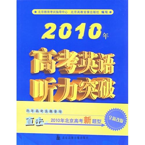 《2010年高考英语听力突破》历年高考真题重现,直击2010年北京高考新题型,全新改版。零距离感觉高考,决胜2010年!紧扣高考命题趋势,荟萃历年高考真题,外籍语音专家朗读,点拨听力应试技巧,直击高考新题型。