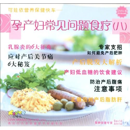 可娃依营养保健快车——〈孕产妇常见问题食疗〉碟配书系列产品,以系统、直观的方式,教您掌握预防常见病症的保健知识,掌握用食疗缓解症状,掌握食疗食谱的制作方法,是您必备的家庭保健医生。