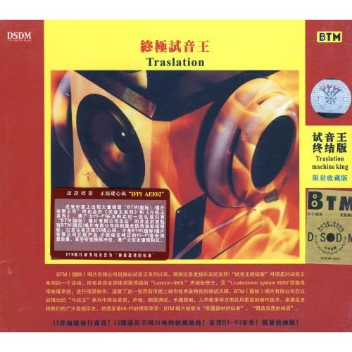 《终极试音王》BTM(国际)唱片公司自推出试音王系列以来,得到众多发烧乐友的支持!“试音王终结版”可谓是对试音王系列的一个总结,所以曲目全部使用最顶级的“Lexicon-960L”声扬处理王,及“t.c.electronic system 6000”顶级母带处理系统,进行缩混制作,早就了这一张目前市面上制作技术最精良的测试天碟。BTM(国际)唱片公司在以后推出的“斗机王”系列中将在音质、声场、频段调试、乐器配置,人声收录等方面采用更高的制作技术,来满足支持BTM(国际)的广大发烧友,创造至尊HI-FI的视听享受!BTM唱片被誉为“衡量器材的标准”、“再造音质的神话”。