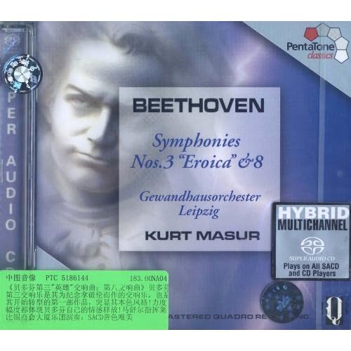 《贝多芬第三“英雄”交响曲;第八交响曲》贝多芬第三交响乐是其为纪念拿破伦而作的交响乐,也是其开始转型的第一部作品,突显其本色风格!力度幅度都体现贝多芬自己的情感释放!马舒尔指挥莱比锡商会大厦乐团演奏;SACD音色唯美。
