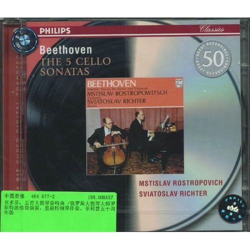 广告语: 贝多芬:五首大提琴奏鸣曲/俄罗斯大提琴大师罗斯特波维奇演奏,里赫特钢琴伴奏。菲利普五十周年版