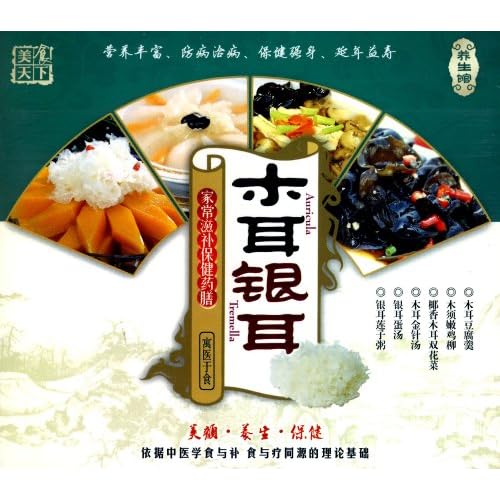 《木耳银耳·家常滋补保健药膳》介绍木耳的功效:补气血,润肺,止血。用于气虚血亏,四肢搐搦,肺虚咳嗽,高血压病,便秘。银耳的功效:滋阴清热、润肺止咳、养胃生津、益气和血、补肾强心、健脑提神、消除疲劳等。