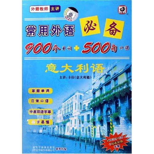 《意大利语》常用外语必备900个单词+500句口语VCD教材从日常生活出发,取材丰富,包罗衣食住行、娱乐、旅游、购物、商务、办公、社交等生活的各个方面。我们以常用、易学、易读为挑选原则,方便学习者掌握及学习,特邀外籍教师授课,打造全真外教口语环境,配合CD活学活用,发挥超强的学习效果,让您不管是在做家务还是开车都能轻松学习。学习者凭着本套教材丰富的内容和浅易的句式加上个人努力定能冲破语言的隔膜,充满信心取得成功。本碟是教材之一,让你轻松学会意大利语。