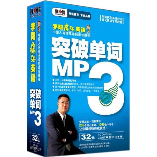 《李阳疯狂英语:突破单词》主讲人李阳,疯狂英语创始人,世界著名英语口语教育专家,一个百折不挠的人生奋斗者。他创造的快速突破英语的学习方法,帮助成千上万人摆脱了聋哑英语的桎梏,走上了英语和人生成功之路!1CD-ROM+1本双色学习手册(250页)!