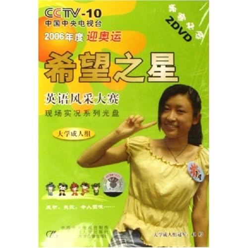 2006年6月,中央电视台2006年度迎奥运“希望之星”英语风采大赛全国总决赛在中央电视台星光演播室隆重举行。经过全国21个赛区层层选拔出来的268名选手参加了半决赛和决赛。规模宏大,类型活泼,选手出色,情节感人,点评精彩。火热的英语,激扬的青春,感动人,鼓舞人,诱惑人!