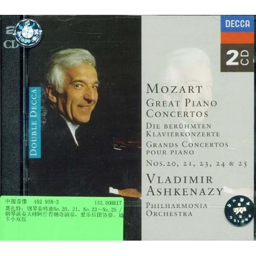 广告语: 莫扎特:钢琴奏鸣曲No.20、21,No.23~No.25/钢琴演奏大师阿什肯纳奇演奏,爱乐乐团协奏。迪卡小双张
