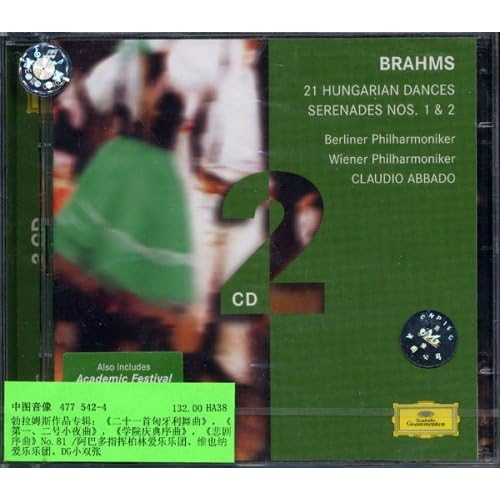 勃拉姆斯作品专辑:《二十一首匈牙利舞曲》,《第一、二号小夜曲》,《学院庆典序曲》,《悲剧序曲》No.81/阿巴多指挥柏林爱乐乐团、维也纳爱乐乐团。DG小双张