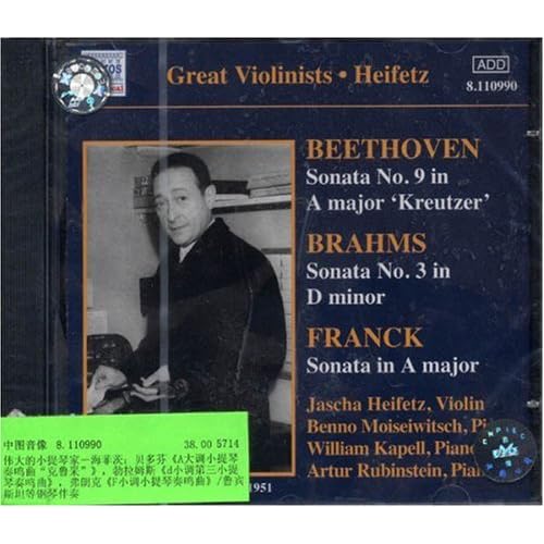 广告语: 伟大的小提琴家—海菲茨:贝多芬《A大调小提琴奏鸣曲“克鲁采”》,勃拉姆斯《d小调第三小提琴奏鸣曲》,弗朗克《F小调小提琴奏鸣曲》/鲁宾斯坦等钢琴伴奏