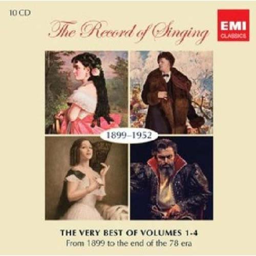 《歌唱精选集(上)》EMI Classics is proud to present two 10-CD boxed sets of The Record of Singing. The first release covers the earliest vocal recordings from 1899 through 1952 (when the era of the 78 rpm shellac record effectively ended), and the second set is from 1953 to 2007 (the introduction of the vinyl LP through the digital era and the CD). Together these 20 CDs offer a breath-taking overview of the past century of classical vocal music.