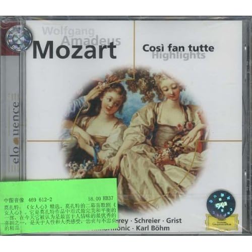 广告语: 莫扎特:《女人心》精选。莫扎特的二幕喜歌剧《女人心》。它是莫扎特作品中形式最完美和平衡的一部。在今天它被认为是最富于人情味的最优秀的喜剧之一,是关于人性和人类感受,忠贞与不忠贞的精品