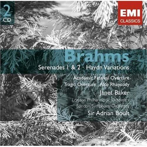 勃拉姆斯::学院序曲/D大调第1小夜曲/女中音狂曲/悲剧序曲/A大调第2小夜曲/海登主题变奏曲 Brahms: Serenades Nos. 1 & 2; Haydn Variations 艺术家:贝克 (Janet Baker)/伦敦爱乐乐团 (London Philharmonic Orchestra)伦敦交响乐团 (London Symphony Orchestra)/博尔特 (Sir Adrian Boult) 双子星系列 Gemini