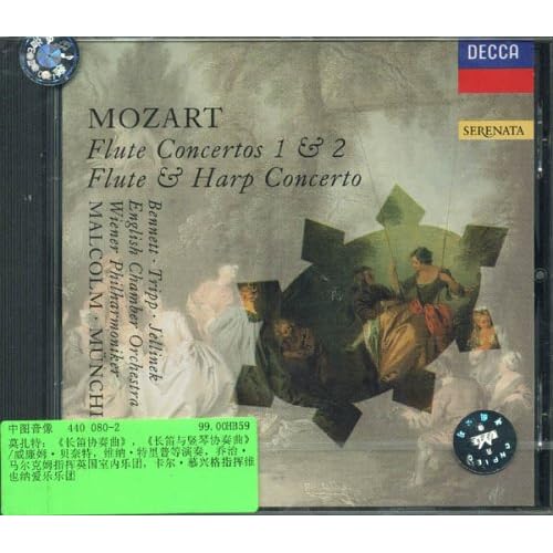 广告语: 莫扎特:《长笛协奏曲》,《长笛与竖琴协奏曲》/威廉姆·贝奈特,维纳·特里普等演奏,乔治·马尔克姆指挥英国室内乐团,卡尔·慕兴格指挥维也纳爱乐乐团
