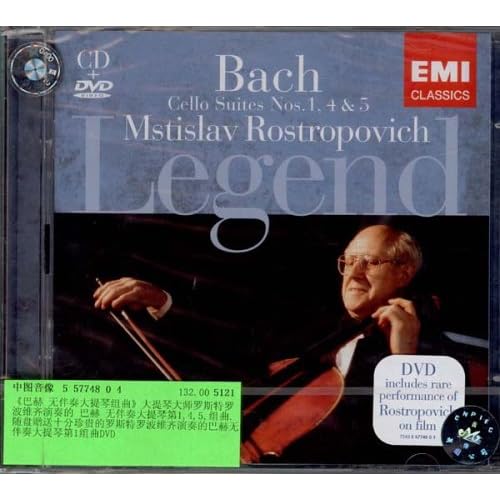 广告语: 《巴赫 无伴奏大提琴组曲》大提琴大师罗斯特罗波维齐演奏的巴赫无伴奏大提琴第1,4,5,组曲,随盘赠送十分珍贵的罗斯特罗波维齐演奏的巴赫无伴奏大提琴第1组曲DVD