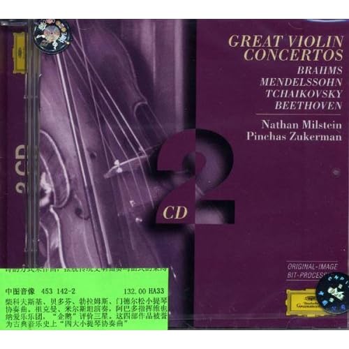 《四大著名小提琴协奏曲》贝多芬、勃拉姆斯、柴可夫斯基、门德尔松小提琴协奏曲被誉为古典音乐史上“四大小提琴协奏曲”这张双CD唱片收录米尔斯坦演奏勃拉姆斯、柴科夫斯基、门德尔松,祖克曼演奏贝多芬小提琴协奏曲的著名演绎。“企鹅”评价三星。米尔斯坦的音乐是个性化和风格感的完美统一,他的技巧绝伦而稳定,从没有大失水准的表现。无论从音乐修养还是技术等各个方面,他都是二十世纪小提琴领域的佼佼者。