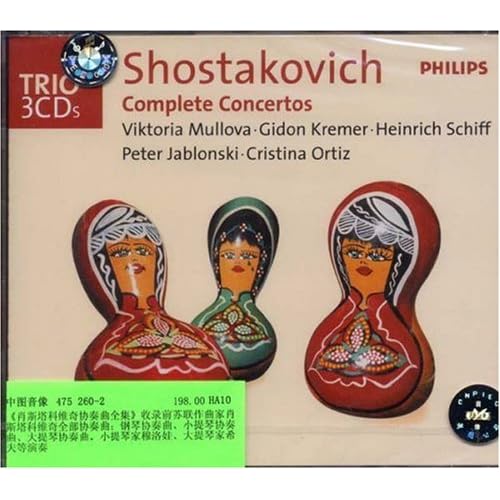 广告语: 《肖斯塔科维奇协奏曲全集》收录前苏联作曲家肖斯塔科维奇全部协奏曲:钢琴协奏曲、小提琴协奏曲、大提琴协奏曲。小提琴家穆洛娃、大提琴家希夫等演奏