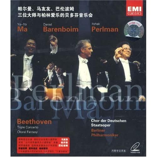 拥有十五座葛莱美奖,录制过五十张不同风格的演奏专辑,曾为风靡奥斯卡金像奖、横扫中西影坛的《卧虎藏龙》担任电影配乐的旅美华裔大提琴家——马友友(Yo-Yo Ma),堪称是古典音乐领域最畅销音乐家。音乐触角广泛多元,近年更致力于将古典音乐引入主流地位,以著亚洲血统和国际乐坛地位,带领世界乐坛更重视华人音乐家及亚洲音乐。伊萨克·帕尔曼(Perlman,Itzhak)除了享有传媒给予的“当今世界最伟大小提琴家”美名,他受邀于张艺谋作品《英雄》电影配乐中的小提琴独奏,更是认人见识到了东西方当代优秀音乐人的完美结合。《辛特勒的名单》配乐的小提琴独奏认这位“以色列音乐大使”不仅在古典乐界,也是一位成功的跨界音乐人,并名列《美国古典音乐名人堂》的一员。一直以钢琴家、指挥家、室内乐演奏家及剧团音乐总监等令人惊叹的“多重身份”活跃于国际乐坛的丹尼尔·巴伦波姆(Daniel Barenboim)“音乐神童——贝多芬”的“三重协奏曲”将这三位世界级大师集结一起,空前合作这部有四位“中心人物”——指挥、钢琴、小提琴、大提琴的独特作品。巴伦波姆指挥兼钢琴演奏,超凡的音乐造诣令人震惊;帕尔曼的小提琴演奏充满着力和美;而马友友的大提琴演奏表现出对贝多芬的音乐深刻阐释;三人高超的演奏技巧、不同凡响的品味,演奏细节更是鲜活精彩,令人动容。第二段“合唱幻想曲”所呈现的重唱、独唱和合唱彷若壮丽颂歌!加上百年名团——柏林爱乐乐团的演出,这部作品,演奏表情丰富真挚,录音场面宏大热烈。如此黄金重量级阵容堪称世纪绝响!