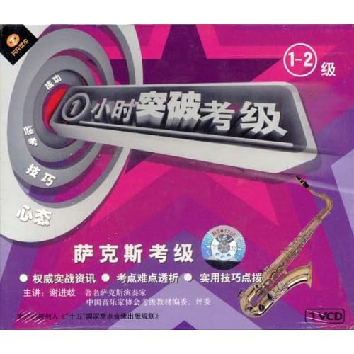 《一小时突破考级:萨克斯考级1-2级》被列入《"十五"国家重点音像出版规划》。主要包括考级难点要领突破和曲目考点分析两部分内容。
