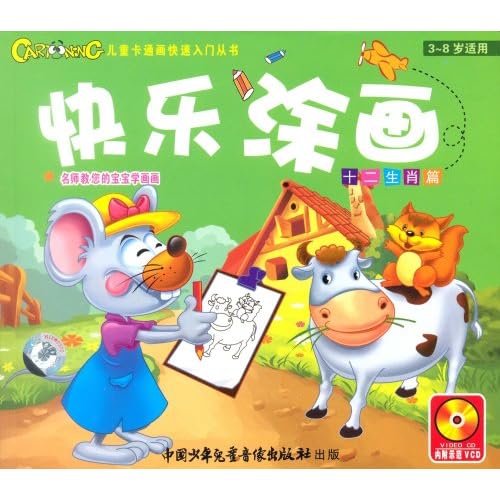 《快乐涂画:十二生肖篇》画册与教学光碟既有画法,又有思路,最大的特点就是每一集都有一段与家长的沟通,帮助家长发现孩子在绘画活动中出现的问题并加以解决,让孩子迅速地掌握卡通绘画技法,对绘画产生浓厚兴趣。