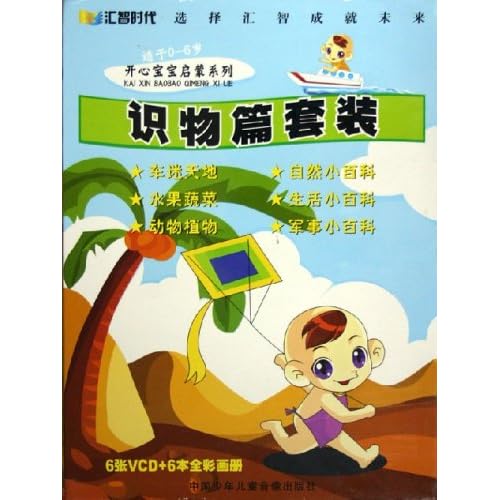 本产品共有六张VCD,配有动画、音乐及真人发音,并赠送六本全彩图册,非常适合婴幼儿认图识物。《开心宝宝启蒙系列》分为:识物篇、唐诗篇、拼音篇、故事篇、童谣儿歌篇、趣味猜谜篇、学习篇等。识物篇包括:车迷天地、水果蔬菜、动物植物、自然小百科、生活小百科、军事小百科。