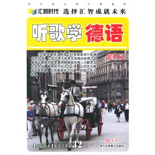 《听歌学德语》为德语配音。4盘磁带+1本学习手册!学外语认准汇智商标,汇智时代,选择汇智成就未来!《听歌学德语》从众多优美的德语歌曲中精选了50首经典流行而又颇具学习价值的歌曲进行了特别处理并配有学习手册,边听边学,寓教于乐,让您学德语不再枯燥。这些歌曲都附有原词、中文翻译。另外,歌词中的德语生词采用了随文注释,方便快捷,还增加了语法注释,使读者在掌握歌曲内容涵义的同时,增强了德国的学习效果。
