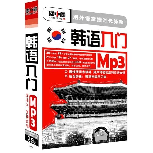 《韩语入门》由1MP3互动多媒体教学光盘+1本学习手册(131页)组成,30个单元,28个日常场景诠释韩语会话全部规律。21个元音,19个辅音,27个韵尾,韩语发音没问题。近150条口语经典句型超过550个配套常用例句。教授纯正韩语发音规则,边学边练,循序渐进。