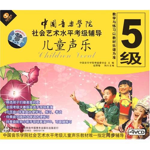 《中国音乐学院社会艺术水平考级辅导:儿童声乐考级5级》精选孩子们最喜爱的歌,全国考级大赛获奖选手现场表演,示范盘+伴奏盘方便学习、练习、考试,伴奏盘可随时升降调方便练习,伴奏盘配有小歌手表演VCD,可跟随学习。中国音乐学院社会艺术水平考级儿童声乐教材唯一指定同步辅导。